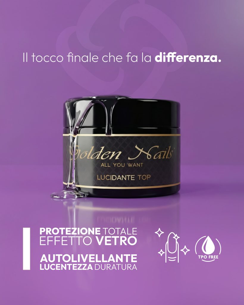 l nuovo Lucidante Top Golden Nails è progettato per esaltare ogni colore con una brillantezza intensa e duratura.